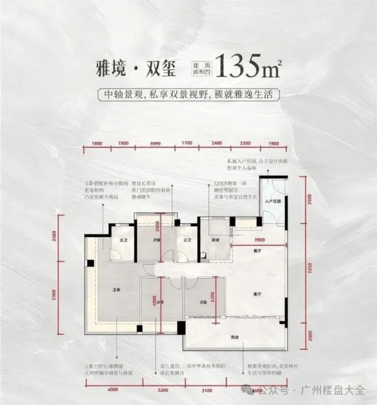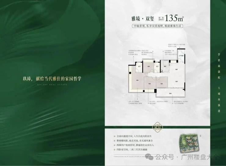 135-138平/世家格局·涵养东方雅集,推门见景,以绿意与光影打造归家第一重仪式感,可自由设计为茶室、花房或艺术角,让生活从「个性化空间」启幕。客厅、餐厅、厨房、阳台全维贯通,形成「阳光自由生长」的通透场域;南向双阳台设计,一侧承载烟火气(家政区),一侧盛放诗意(观景台),实现生活功能与美学体验的双向平衡。三面采光,框景入室,晨起可观园林叠翠,夜幕可赏万家灯火,以「无界视野」定义主卧奢享尺度。