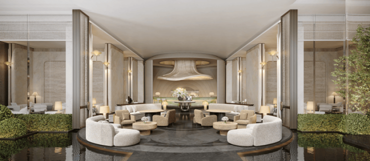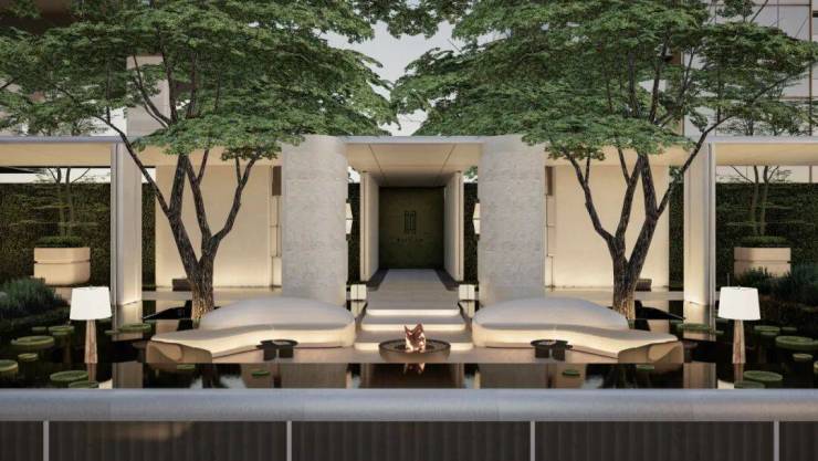 - 景观:JTL刘展设计400米归家动线,融合轴线对称树阵与下沉式会所。
