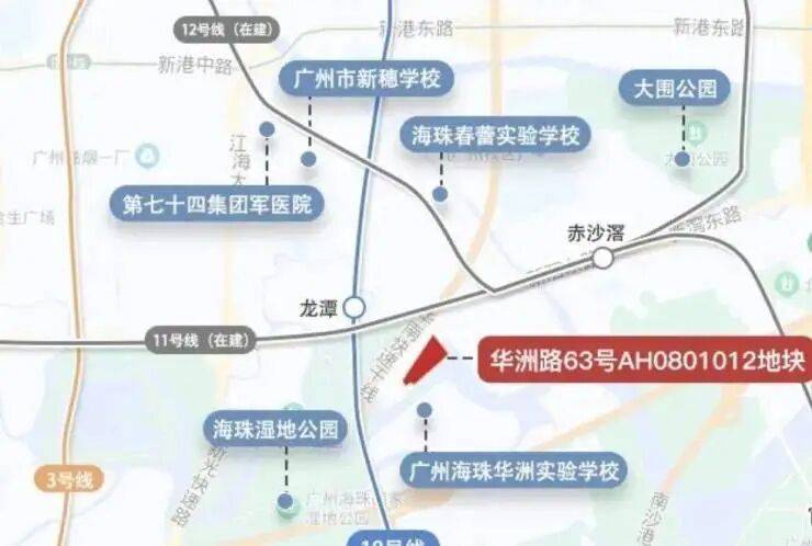 保利湖光悦色位于海珠区华洲路旁,西侧为广州海珠湿地公园,南侧邻石榴岗河,距离地铁11号线(在建)和18号线换乘的石榴岗站约600米,距离琶洲南TOD不到两公里。