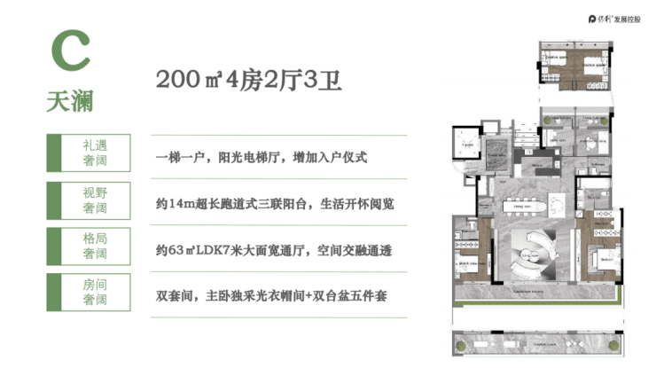 【产品】建面约127-200㎡全南向四房奢阔大平层
