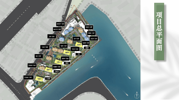 产品主要以小高层和叠墅为主,其中16栋为14-16层的小高层住宅,5栋临河的4层叠墅。