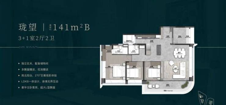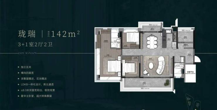 如设备空间、厅卧都可做灵活空间,相当于在三房基础上,再多两个多功能室,这是同面积段户型无法匹及的格局。