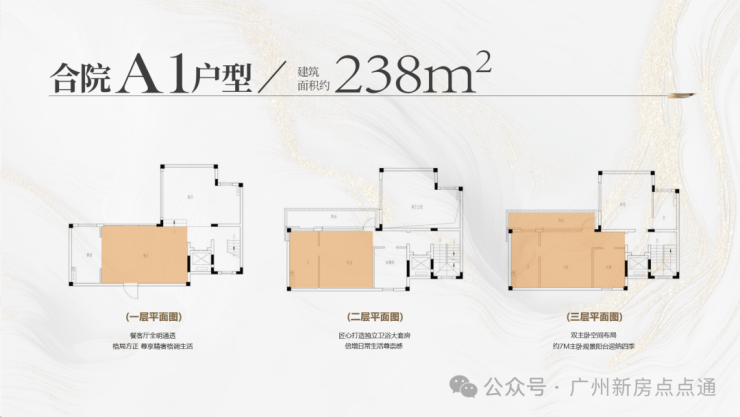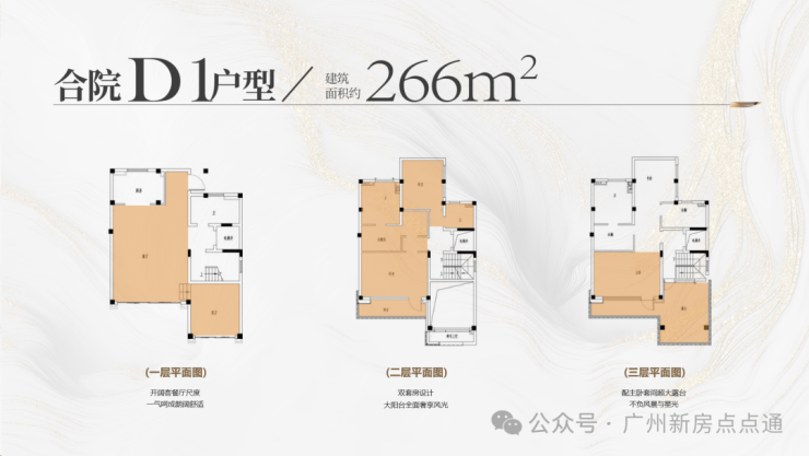 【合院户型】建筑面积约220-265㎡大尺度大阳台,双层大挑空设计约9米超大面宽,IMAX级风景跃然眼前买三层享五层,赠送率高达312%顶配酒店豪华主卧套,全套房设计