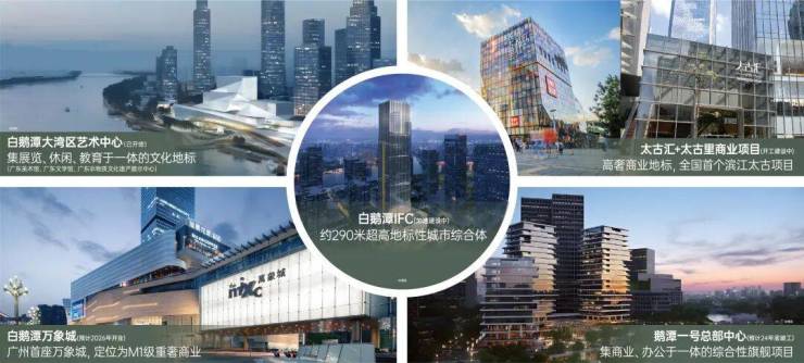 全广州仅 3%人独享头排江景,项目周边有百米超阔江面,8.8km 花地河滨江绿道公园,最阔约百米无界视野江面,景观资源丰富。大湾区艺术中心已开放,太古商业、万象城、白鹅潭IFC和鹅潭一号总部中心等加速建设,广州全面迈入白鹅潭时代。诚汇新都坐拥白鹅潭 CBD 强劲发展势能,未来区域价值将不断提升,发展潜力巨大。