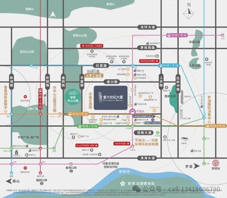 交通枢纽C位,地下商业直连2/7/8号线华强北地铁站,1站换乘1/3号线,四地铁/三大道/三大口岸/双高铁站