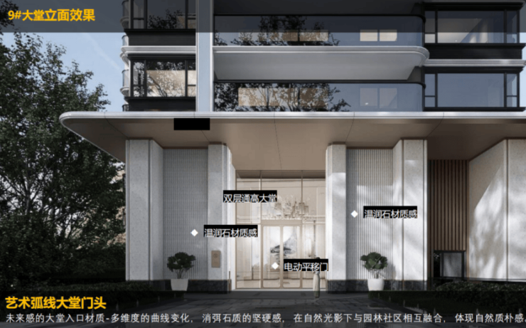 【礼序升维】甄选奢材、搭配铂森定制琉璃54m超级领域,专属天地。7.5米挑高大堂,艺术弧线勾勒。