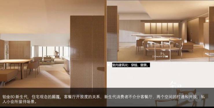【空间升维】IMAX环幕巨厅与落地窗、奢阔全景舱主卧,焕新居住想象;铂金80直击新生代需求,打通客餐厅,增设私人小会所场景,全方位升级空间体验。