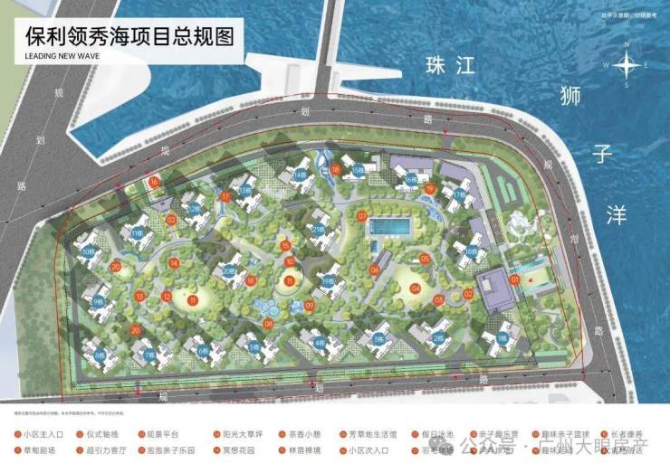 景观不错,东南临海 L型环幕海景-珠江入海口+狮子洋,瞰1.5km海景面。东低西高围合布局,max级别海园双景