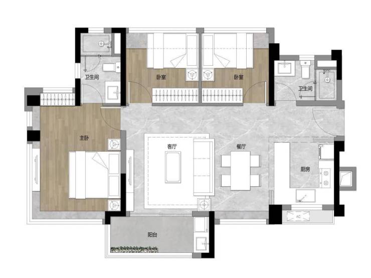 ——77㎡三房两厅两卫,全新升级三房——