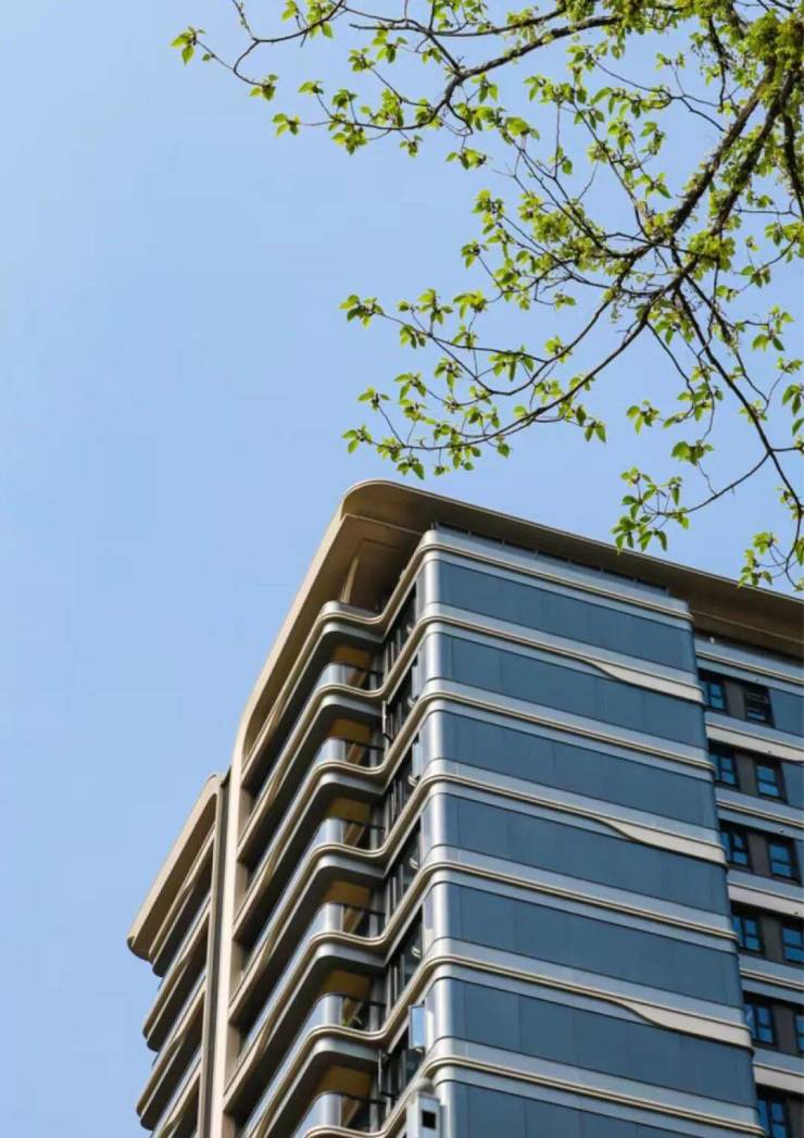 云翼建筑的铝板线条隐于层层树影之间,没有符号化的装饰,而是写仿自然的曲线弧度,与周边环境和谐共生。同源迪拜公主塔的铝材品质,具备25年防水耐蚀性能,确保立面不会因风雨的洗刷而展露颓容。