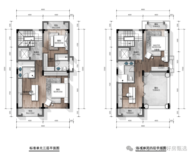 独栋别墅(建面约767-1000㎡以上)则更强调“私域”的纯粹性。300-400㎡的私家花园、70㎡的阳台露台,让室内外空间自然过渡。7套房的设计,确保了每个家庭成员的独立与私密;而环绕中心广场园林的布局,则让社区既有整体的归属感,又不失每户的独立性。