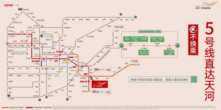 2地铁3站点:2地铁(13/5号线),3站点(夏园、南岗、保盈大道)环绕,4站到鱼珠,5站到天河,不换乘直达珠江新城;