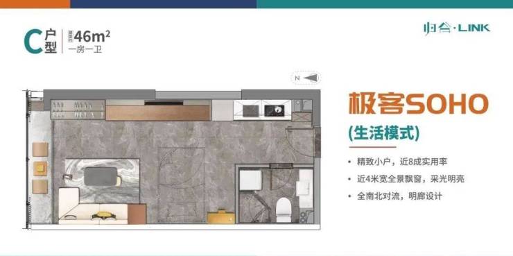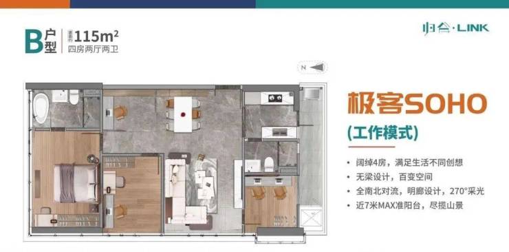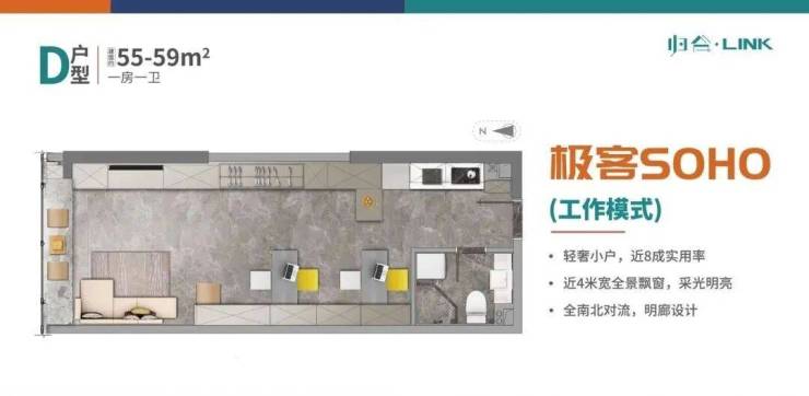 约4.5米层高,百变创享空间,满足居住与办公双重需求