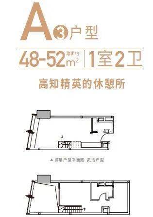 A户型:48-60㎡ 复式1至2房