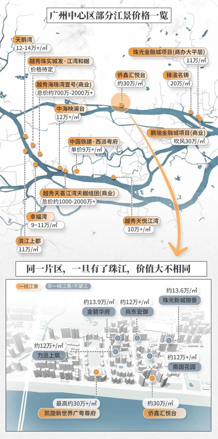 2、珠江的确很长,但最值钱的无非就是前航道+后航道,特别是其中的南向望江地。