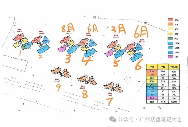【在售户型面积】:建面约90/125/160㎡三至五房