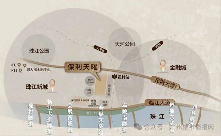 保利天曜位于员村二横路,金融城西区的核心位置,靠近珠江新城CBD,与广州塔、琶洲会展中心等地标性建筑近在咫尺。