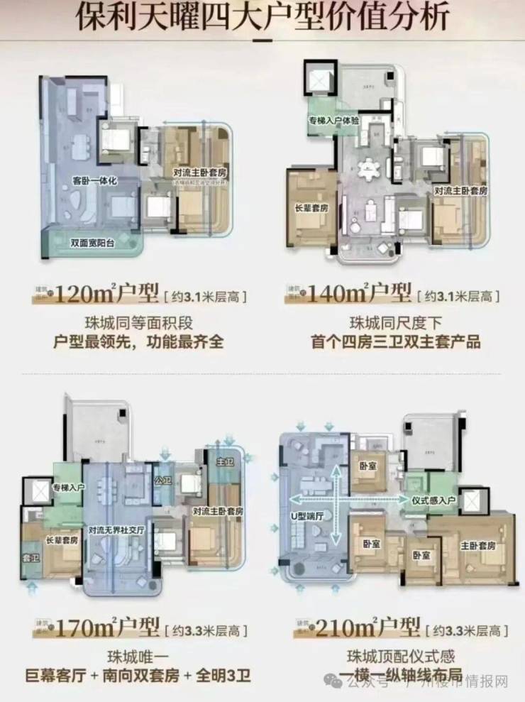 是保利全国首座“天曜”,将打造保利全新一代天字系标杆,产品上打造鎏金美学的显贵风格,成就珠江前航道全新的豪宅天际线。