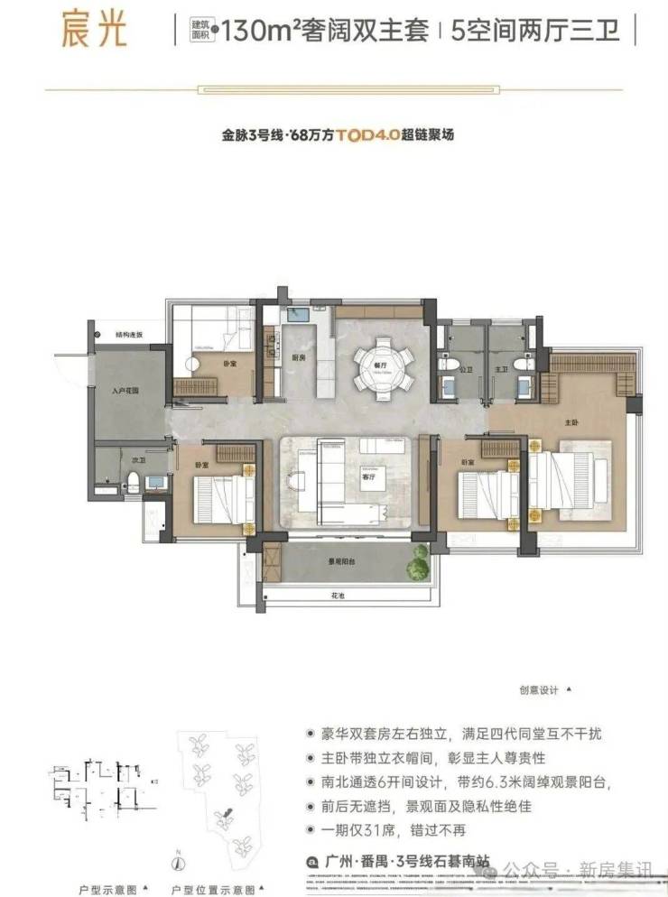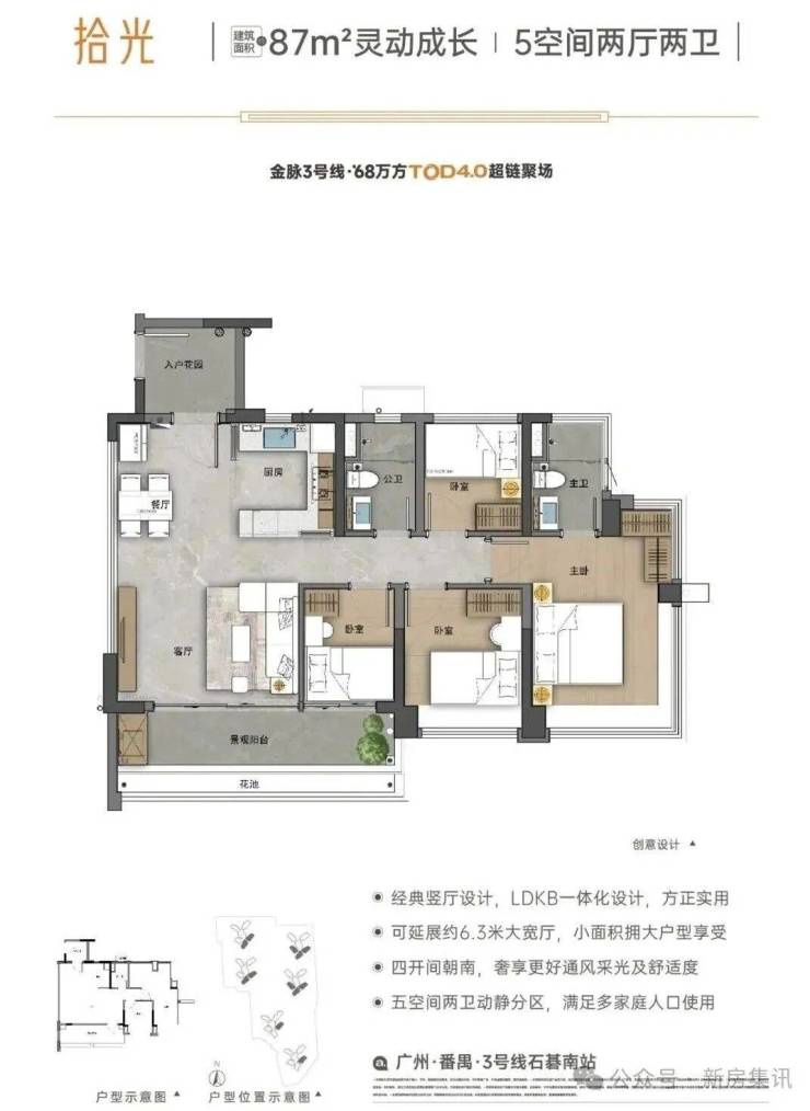 项目整体规划约68万方,是广州地铁地产TOD4.0生活模式全新作品,遵循广州地铁“以城为本,以人为本”发展理念,以品牌“好房子”产品观为基石,以3号线超链城市,为城市兑现品质多元新生活聚场。