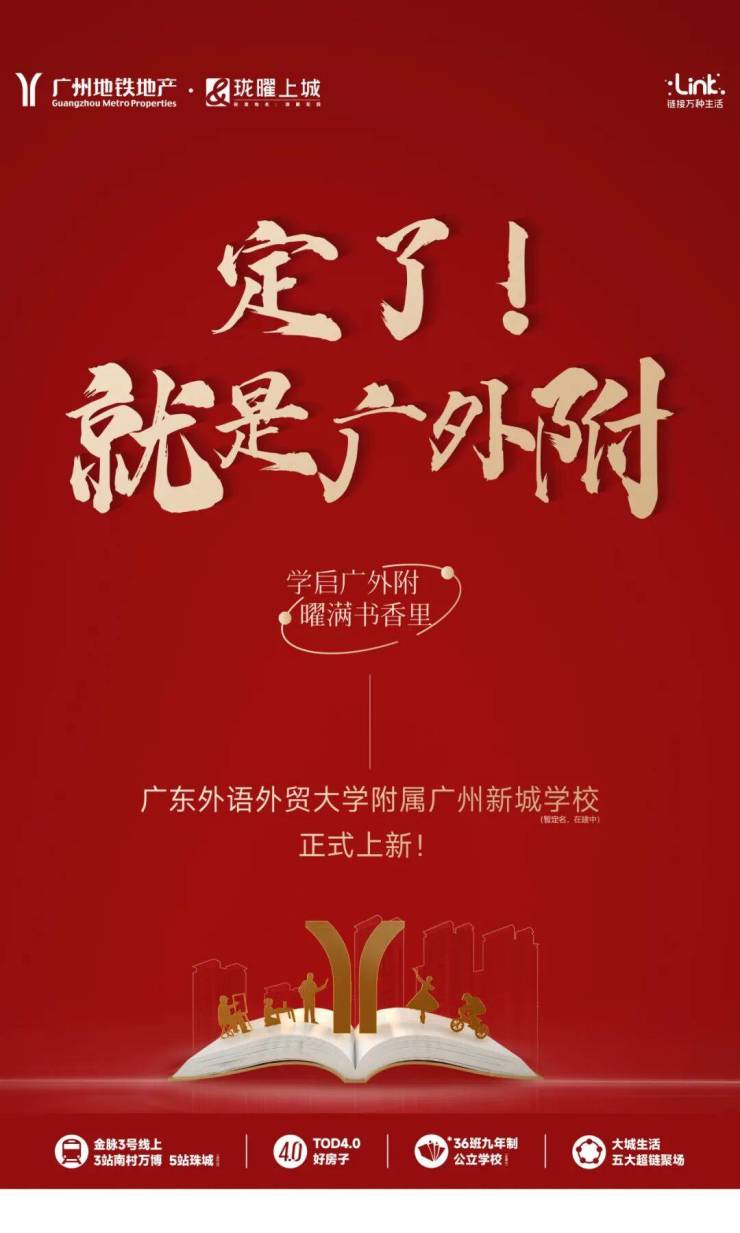 就在2025年3月17号上午,番禺区教育局、广东外语外贸大学,以及广州地铁·珑曜上城,就其配建的九年一贯制学校,达成了三方协议!