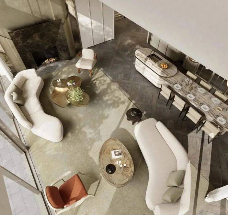 户型品鉴:——上合墅 | 地上3-4层、地下2层3F-社交主场:7米挑高客厅·中西双厨岛台,满足社交&生活所需;