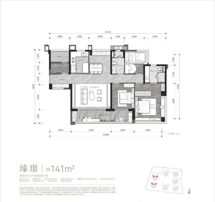 建面约𝟏𝟒𝟏m² 𝟑房+𝟐厅𝟐卫+灵动空间,全明多开间朝南,约𝟏𝟒.𝟔米IMAX采光视野,约𝟖.𝟐米景观大阳台,解放多重生活享受,主卧端厅设计,𝟐𝟕𝟎°全景采光,尽揽滨水美景