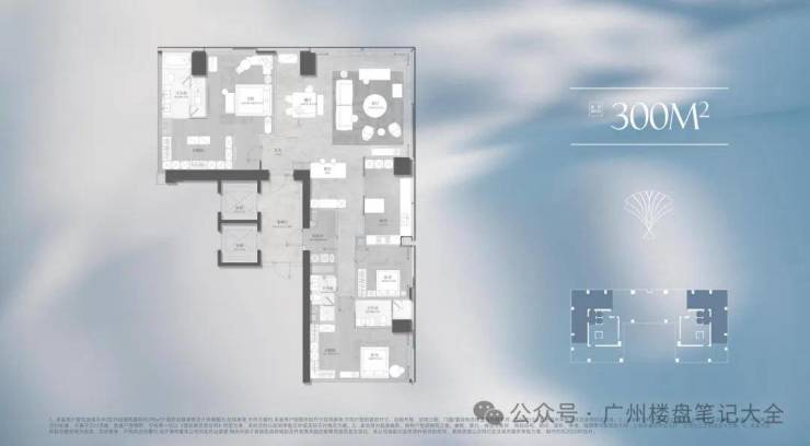 户型设计是项目的核心卖点,主推 188-1400㎡商业大平层,4-4.5 米层高设计,空间感突出。