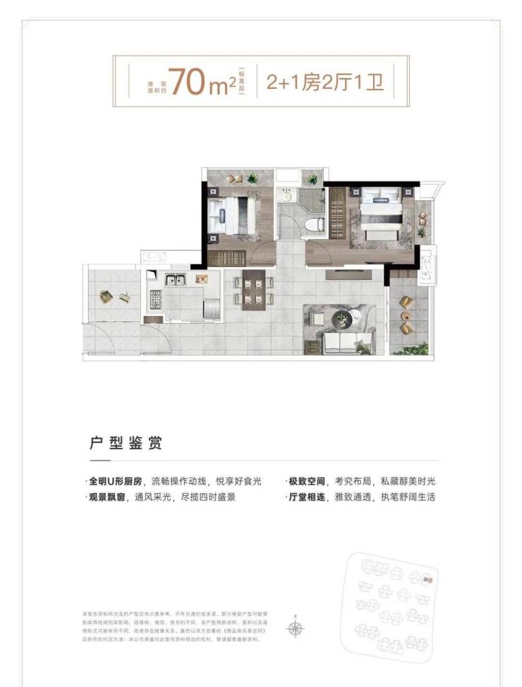 【70㎡ 2+1房2厅1卫】