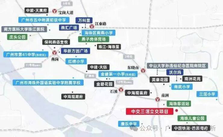 项目距离地铁2号线和广佛线交汇的南洲站直线约500米。自驾有广州绕城高速和广州大道在项目旁交汇。