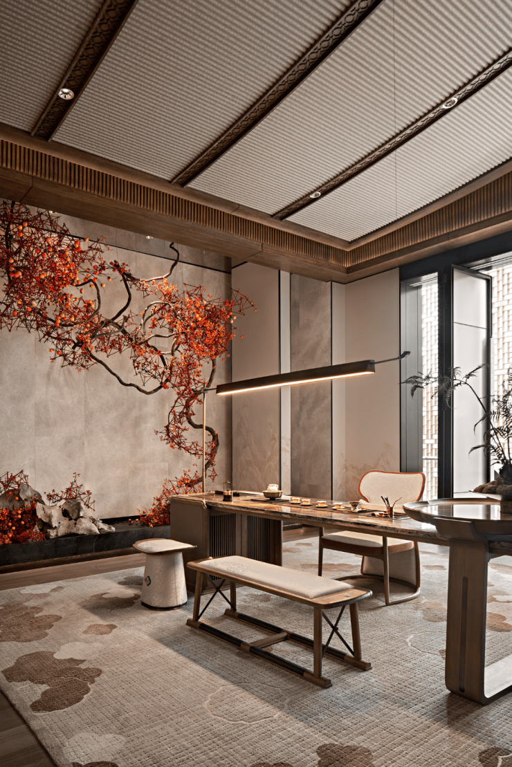 天作之和,瑞见东方。广州保利天瑞是2023-2024中国十佳豪宅项目,会所由深圳盘石设计倾力打造,以城央正心之姿,承中式传统文脉,续尊崇府院之制,于繁华闹市中,独揽瑞意东方。