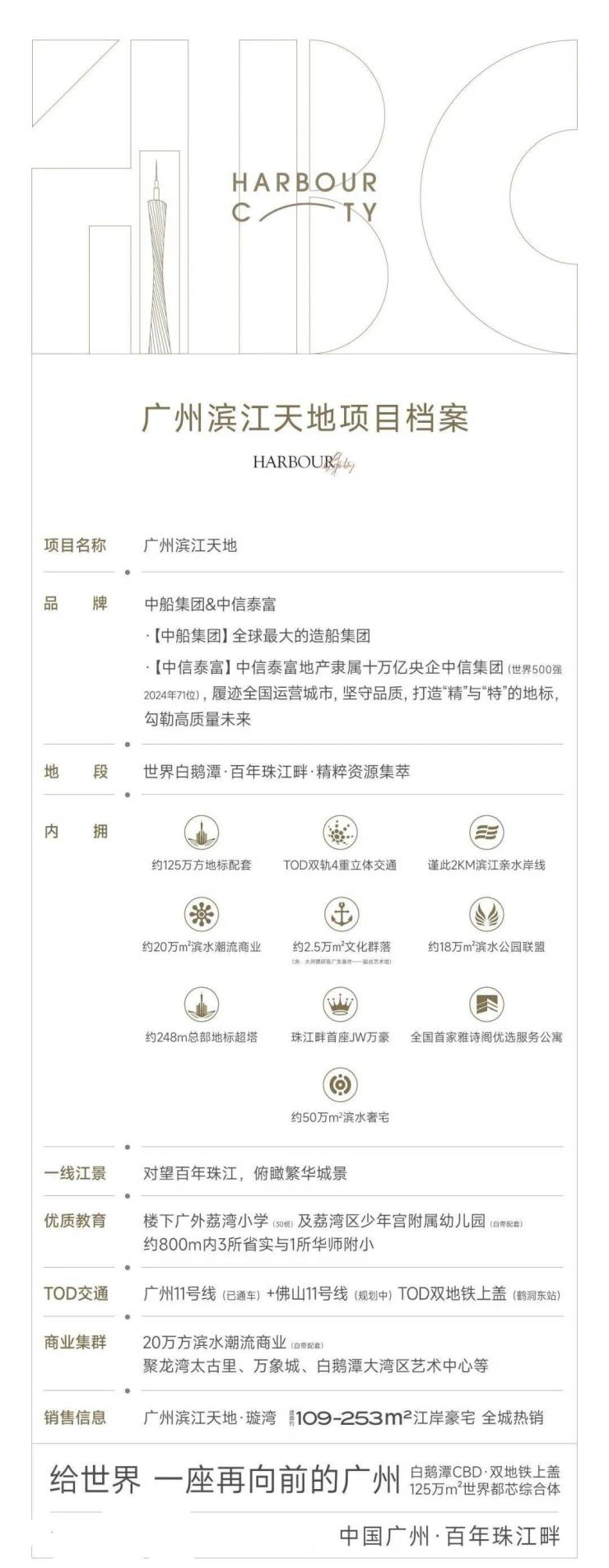 广州滨江天地坐落于荔湾区极具发展潜力的白鹅潭板块,占位白鹅潭2公里黄金滨水岸线,尽享一线江景资源。