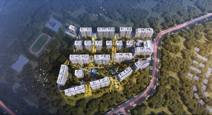 合生缦云·帝景山庄最大的设计难点在于场地的高差,用地高差最高点标高为65米,最低点标高为38米,高差为27米。设计充分利用地块的特性关系,根据地形变化的舒缓,分成了3阶台地空间,将居住空间形成组团形态,并形成了错落有序的天际线变化。