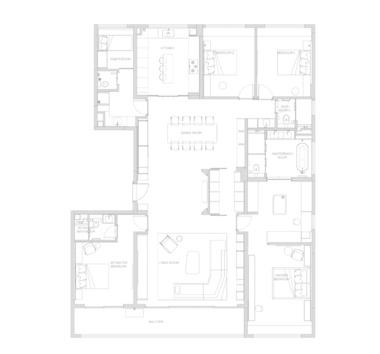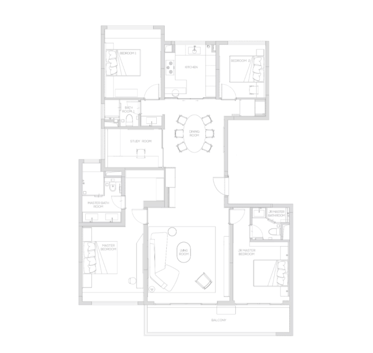 190产品为五房两厅三卫产品,充满了对云端人群生活的独特见解,南向双主卧,中西厨布局,打造纵向超长LDK一体化空间,产品所体现的不只是居住产品,更是特属客群所拥有的生活方式。