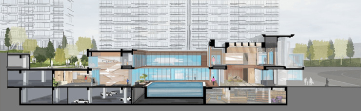 入口中心区域为社区会所,承载着缦云自由典雅的品质精神。会所设置艺术过厅、瑜伽室、健身房、多功能私教室、LOUNGE、消毒池、男女更衣间、男女淋浴间、桑拿房、儿童娱乐区、水吧台、音乐教室、YUNE厅、艺术走廊、红酒吧、阳光房、泳池等功能,提升了整体住区的调性,让归家体验更加丰富,生活尽享便利与尊贵。