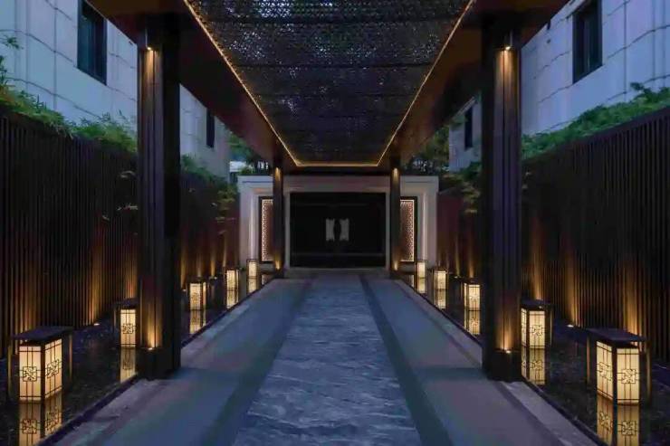项目取法皇家院落规制,通过威仪府门、镇宅石狮、尊荣门匾、名园造景等方式,将传世家族的威仪展现得淋漓尽致。一府宅门,252颗铜制鎏金“浮沤钉”,开阖磅礴气势;镇宅石狮,采用法国金花干挂天然石材,重达上吨,器宇轩昂;德系品牌 SCHUECO 系统门窗,双层中空 LOW-E 玻璃,营造丰盈与外、安静于内的家族生活。