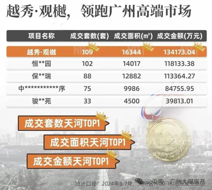 特别是越秀·观樾2024年3月首开成交15亿,这在当时冷淡的市况下尤为难得,由此一炮而红,迅速打开市场。