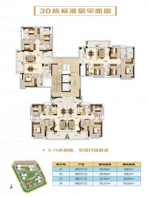 总共打造5栋楼宇,坐北朝南,现开售29、30栋,一楼设有独立的活动花园,地下停车场自带超700个停车位。