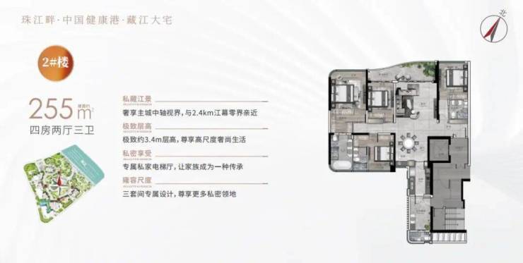 广州幸福湾,拥有2.4km的超长江岸线,稀缺性可见一斑。