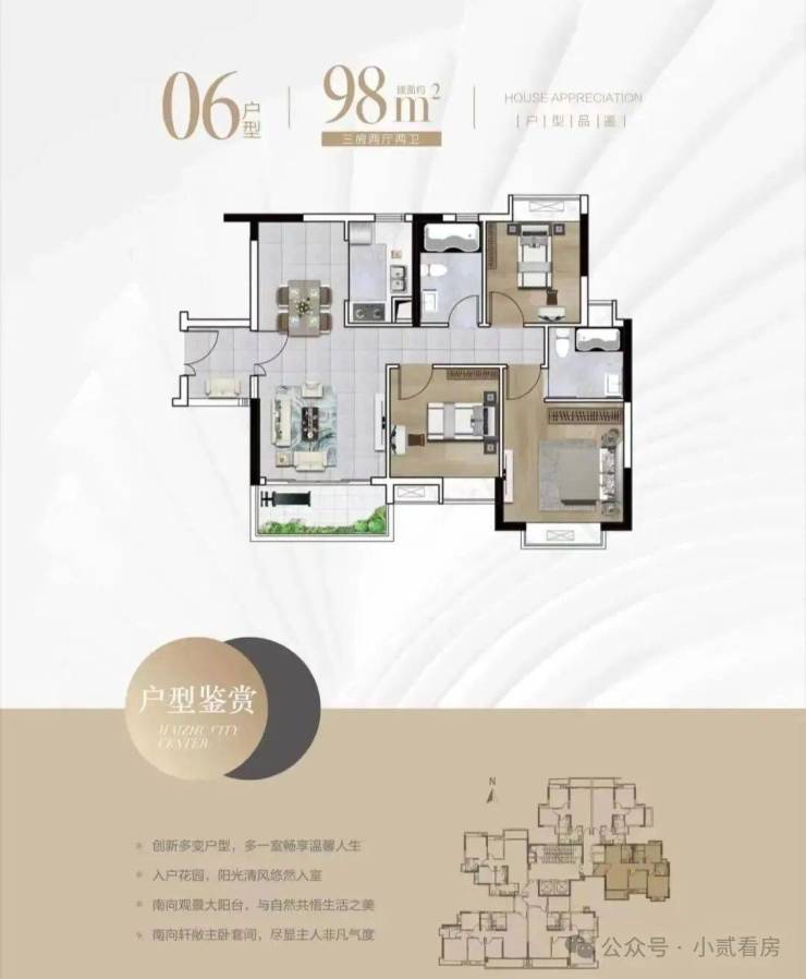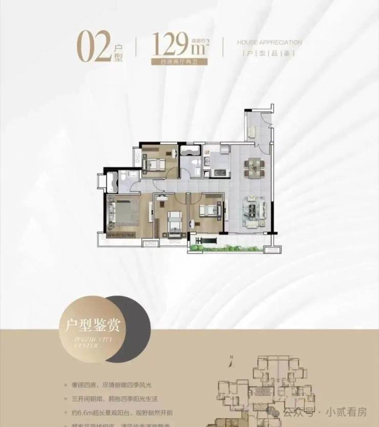 住宅只有1栋,26层高,2梯6户;减去1-5层的商业、公建配套等,住宅货量也就120多套,准现楼,建面约75-129㎡共5种户型全部做了实体样板间。