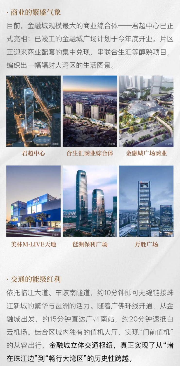 珠江新城是凝固的传奇,而国际金融城是奔涌的未来它托举着广州在世界舞台上更进一步的雄心,约8平方公里的金融城,约80%的土地被赋予金融总部、数字经济等国家级战略使命留给一线亲江生活的土地,仅仅只有约0.3%这天赋珍贵的留白,谨为少数生而不凡者而留。