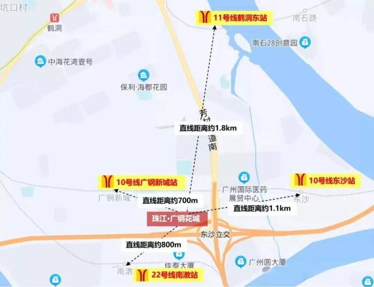 ※10号线广钢新城站(在建):距项目约700米,2站海珠,0换乘直达珠江新城;