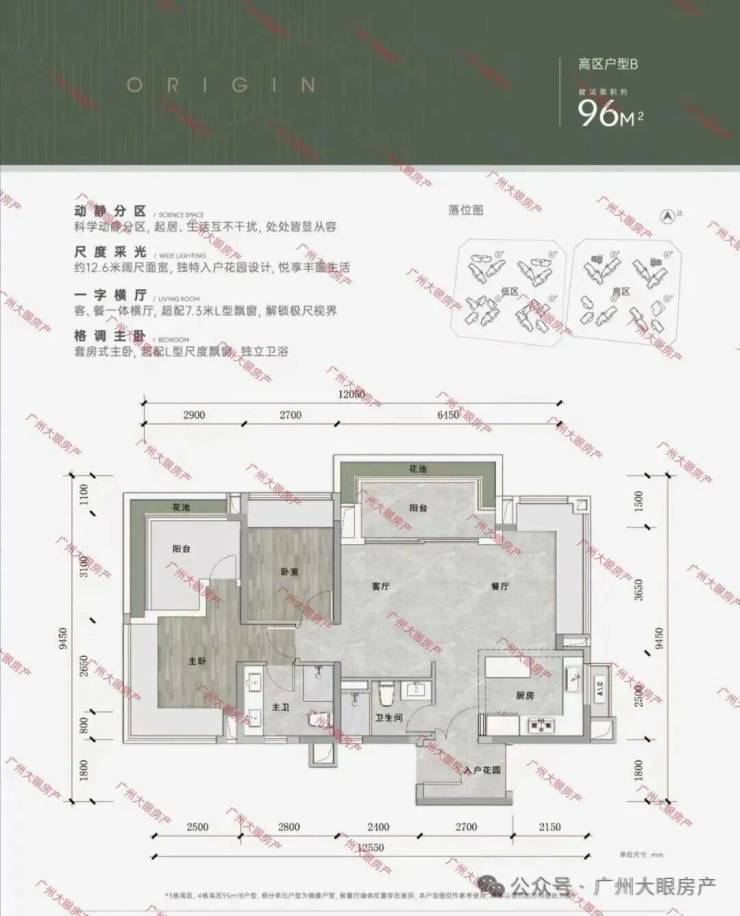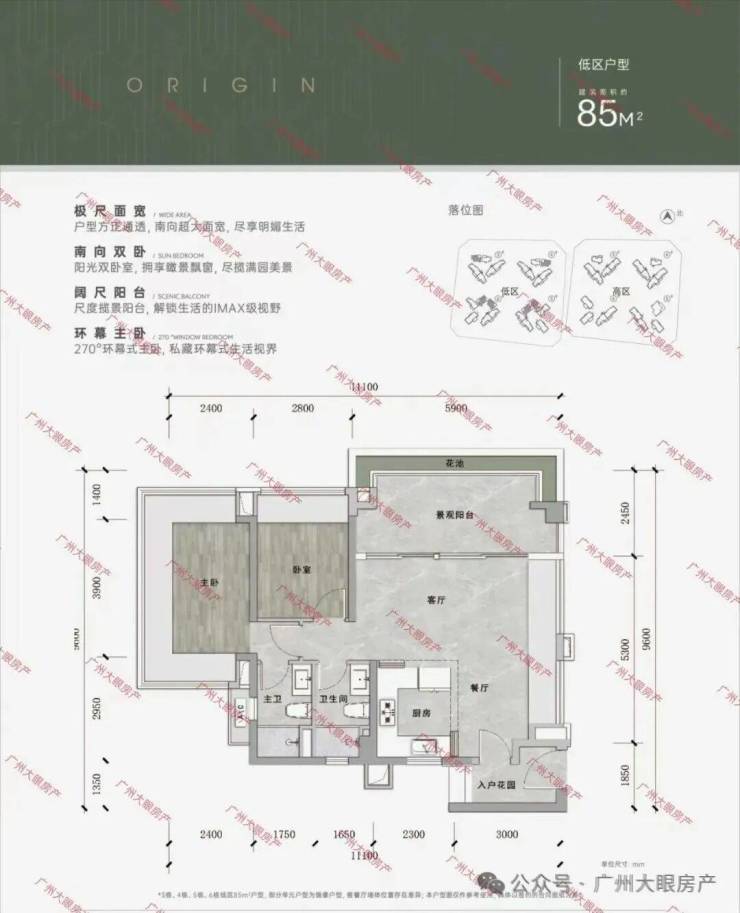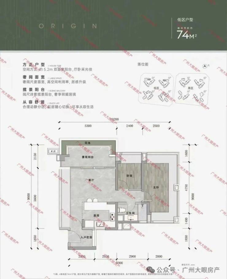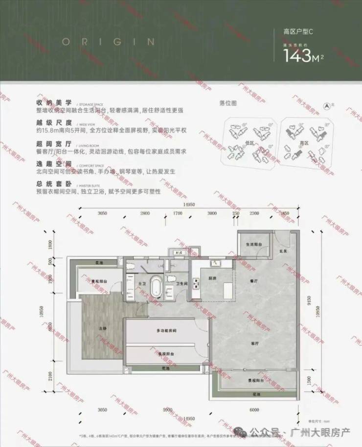 低区以小户型为主,高区多是大户型,居住舒适度会更佳。
