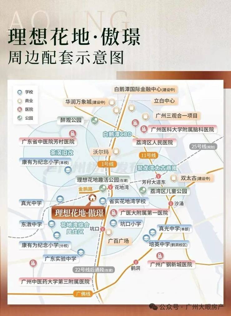 项目的核心优势首先在于其 “万科品牌保障的卓越品质与全周期服务” 。万科以其卓越的产品力、精工品质与备受赞誉的物业服务闻名,“傲璟”作为其高端产品线之一,预计将秉承这一传统,在规划设计、园林景观、户型细节及智慧社区等方面提供高标准的居住体验与长期服务保障。其次, “花地湾板块城市更新的发展潜力与成熟基础” 。项目所在的荔湾花地湾板块正经历城市更新,未来发展前景广阔,同时又能依托荔湾老城现有的成熟生活配套,兼具成长性与即享的便利性。再者, “万科全龄化社区配套与教育资源的整合能力” 。万科在大型社区开发中擅长整合教育资源与打造全龄化活动空间,项目有望引入或毗邻优质学校,并规划丰富的社区园林、儿童乐园、健身空间等,满足家庭各成员的需求。