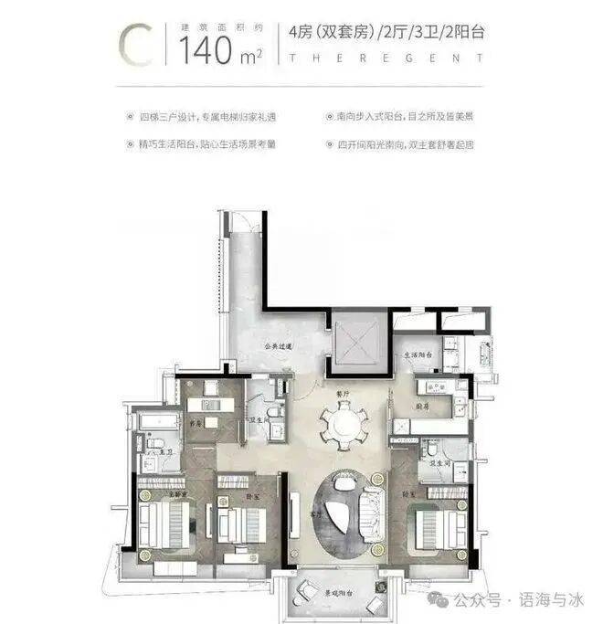 多元化产品线:涵盖140-480㎡江景大平层、叠墅(279-437㎡),其中叠墅实用率高达355%,配备私家电梯、入户花园及超大露台,部分户型首层花园达797㎡。