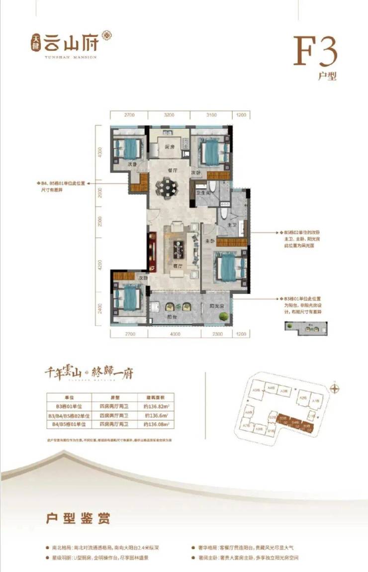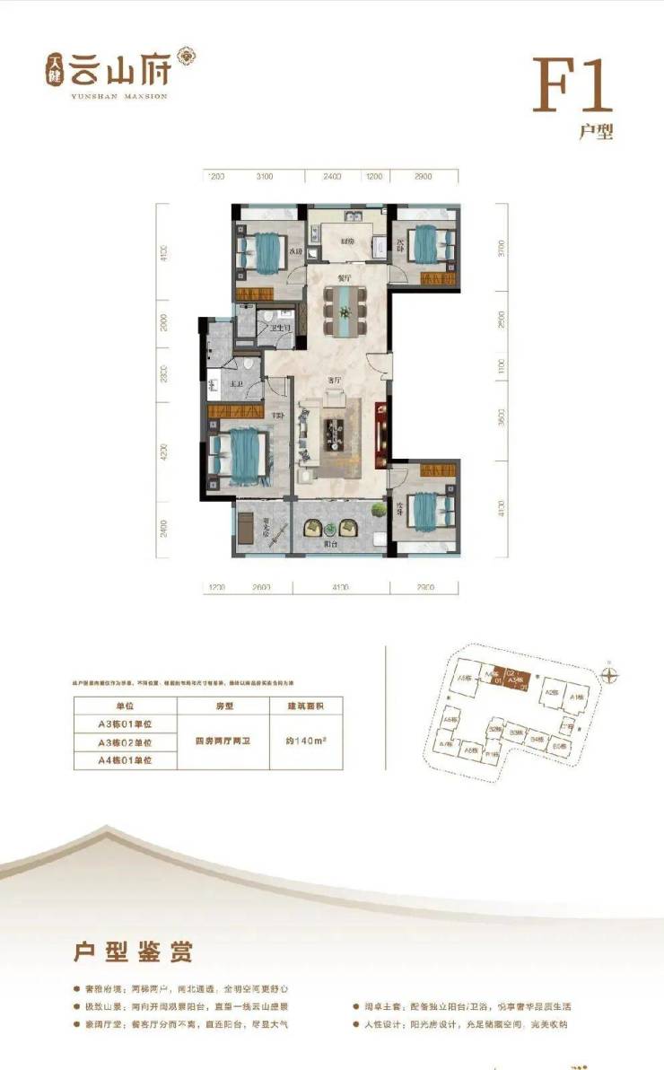 在售户型:75-141㎡ 三房至四房