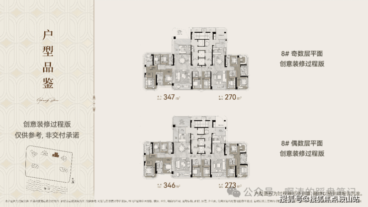 项目产品涵盖205-630平户型,呈半围合式布局,户户朝南、户户一线望江。