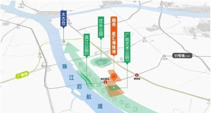 项目位于广州五大主城区之一的海珠区,现成地铁广佛线燕岗站附近;海珠创新湾头部发展区域,广纸新城核心腹地,坐拥千年羊城繁华,未来创新湾将承接广州城央高净值人群的消费、娱乐、居住等需求,是广州全市风水最旺处,为云山环抱处,和珠水汇聚。广纸所在片区为“玉带环腰水”格局,居者非贵则富,多主事业成功、财运亨通,赚钱比较容易,且能积聚至富。