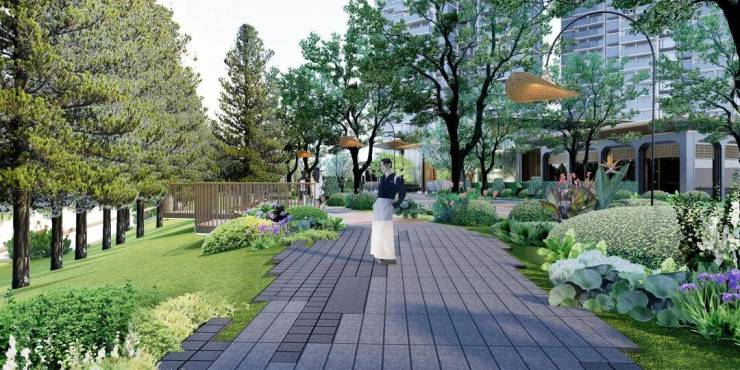 项目园林将打造六大社区花园,外部将优化南侧水道,打造一线河景+双公园