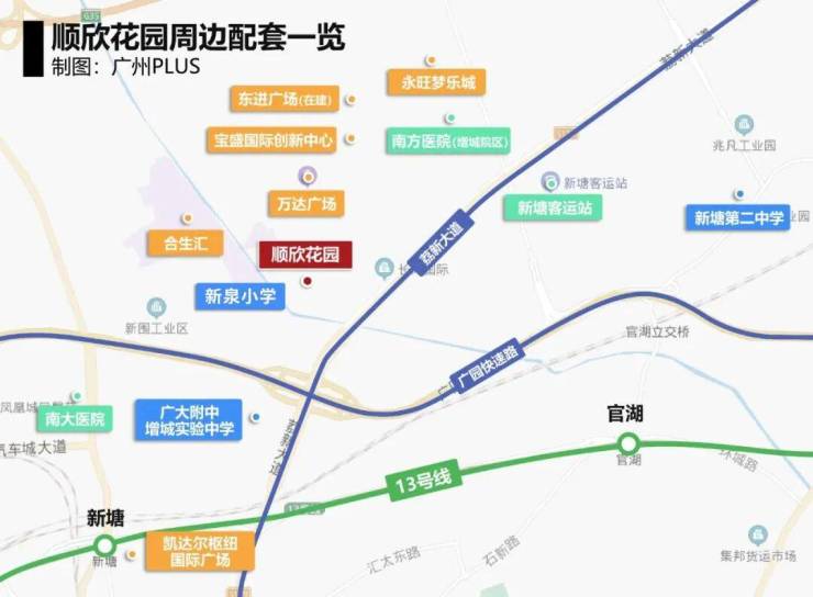 项目由增城市顺欣房地产有限公司开发,位于增城区新塘镇广园东荔新出口北行约300米,小区位置在广园东出入口旁(可通过广州或东莞的快速路)。