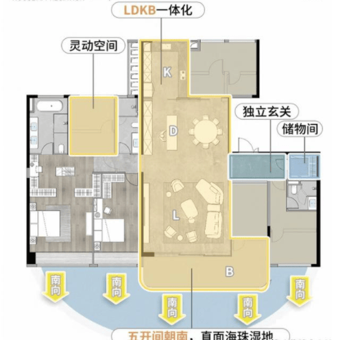 中海大境就落在这条中轴线上,目前东区的住宅已经是现房状态,主打140-270㎡的四房户型,对想在海珠扎根的改善家庭来说,不妨从日常居住的实际需求看看它的情况。